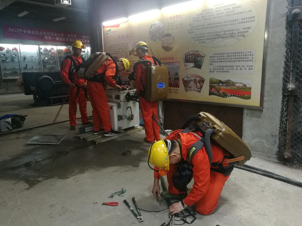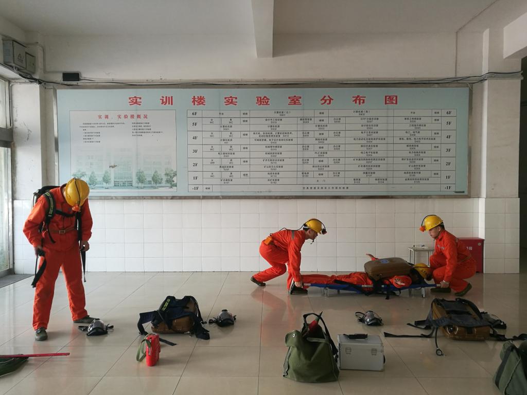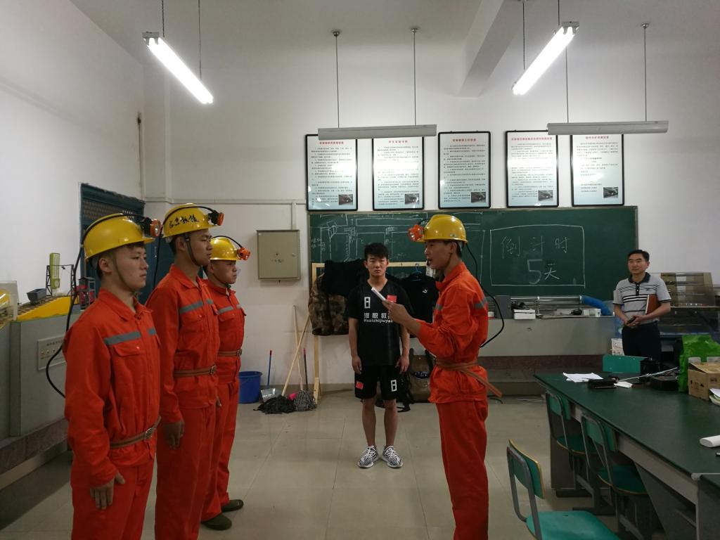 比赛在即,为使选手尽快适应大赛氛围,提高选手的赛场心理素质和团队合作意识,2019年6月4日上午,能源工程系在学校实训楼组织“矿井灾害应急救援技术”赛项模拟比赛。