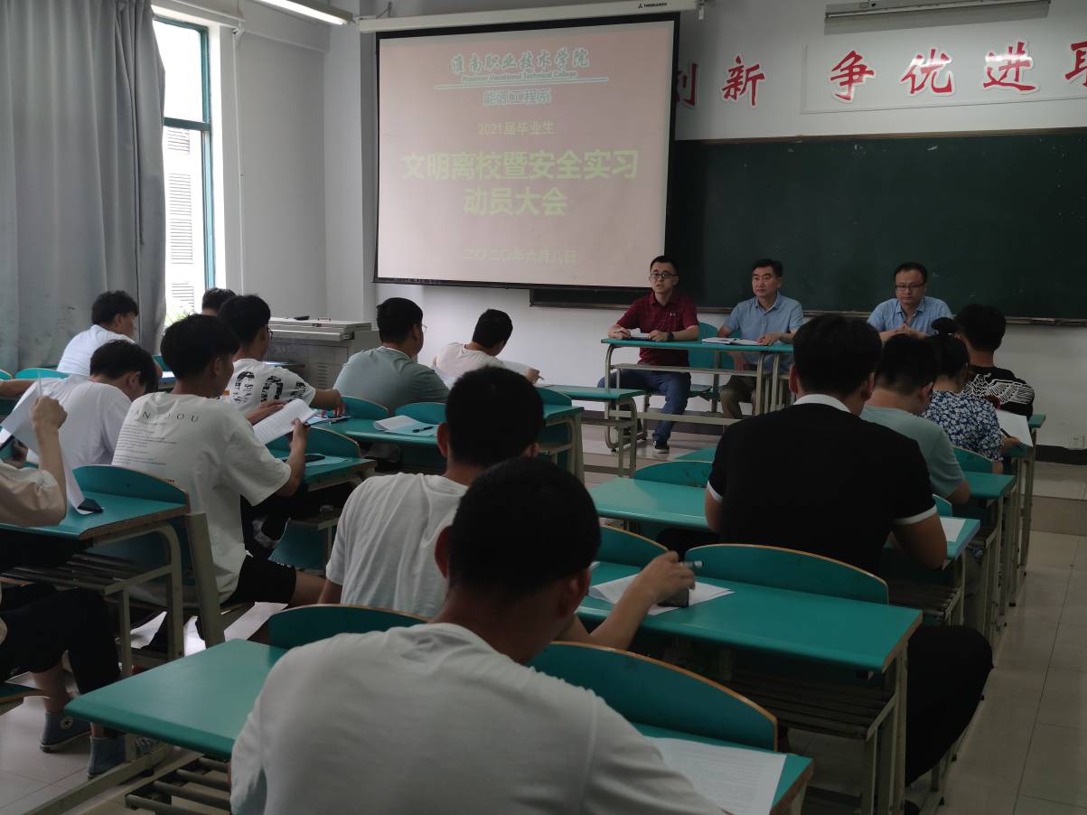 曹老师接着介绍了离校和实习工作安排,对离校手续办理、实习协议签订、实习安全防范、就业协议签订、顶岗实习报告撰写等事项进行了详细说明。