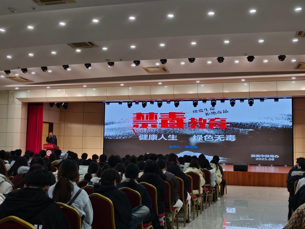 本次讲座特邀淮南市禁毒支队、谢家集区公安分局刑警大队警官主讲。讲座围绕反诈防骗、禁毒防毒两大主题展开。主讲人结合高校典型案例,系统讲解刷单返利、冒充客服、虚假贷款、网络交友等高发诈骗类型,拆解诈骗套路与话术陷阱,重点强调“三不一多”原则:不轻信、不透露、不转账、多核实。禁毒宣讲环节通过图片、视频与仿真模型展示,详细介绍传统毒品与新型伪装毒品(如“奶茶包”“上头电子烟”“邮票”等)的特征与危害,警示同学们远离复杂场所、拒绝陌生人馈赠、杜绝好奇尝试,树立珍爱生命、远离毒品的坚定意识。