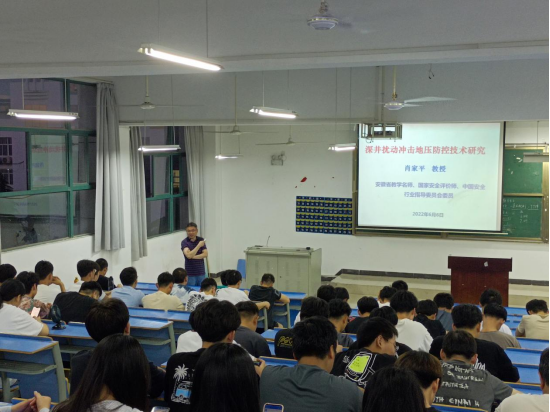 2022年6月6日,在bwin集团中区一号教学楼1415教室,bwin集团副院长肖家平教授为师生做了一场题为“深井扰动冲击地压防控技术研究”的专题讲座,bwin集团100多名师生参听本次讲座。