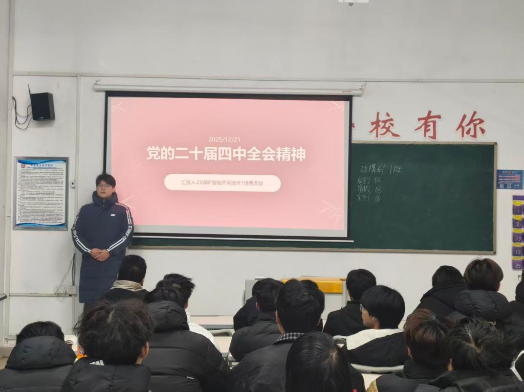煤矿智能开采技术专业团支部以 “践行全会精神 筑梦热能强国” 为主题开展专题活动。团支书贾天如带领同学们学习公报原文,结合专业特色衔接理论学习,引导大家立足专业、勇担能源革命时代使命。